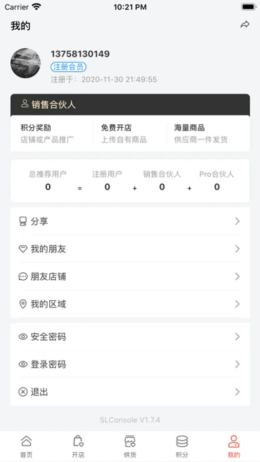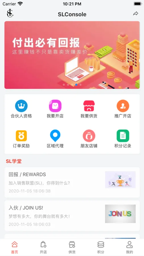 SLconsole是销售联盟(销售资源共享平台)提供给所有用户的免费后台管理工具,具有积分管理、个人数据维护、平台内部多用户协作等功能,通过该工具,用户可以方便的查看店铺订单销售数据,订单状态及物流等信息。根据自身需要合理运用所得积分获得相应的进阶功能,如增加向平台公共产品库上传商品的数量,通过投票参与平台的运营讨论等。