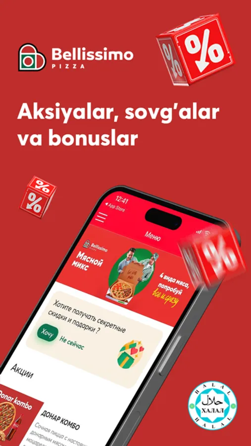 С помощью мобильного приложения Bellissimo Pizza вы можете: