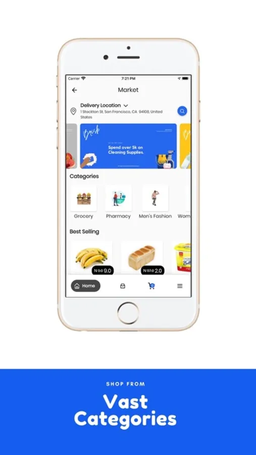 We also provide a marketplace platform for users to shop for everyday household items from nearby vendors.