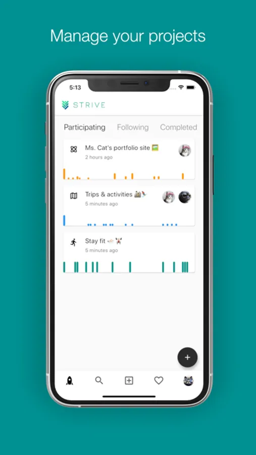 Strive is a social/productivity app that helps you achieve your goals and objectives. It allows you to define your goals in simple projects with milestones and objectives. It also encourages you to celebrate your progress step-by-step with various formats such as notes, photos, videos, gif and voice recordings.
