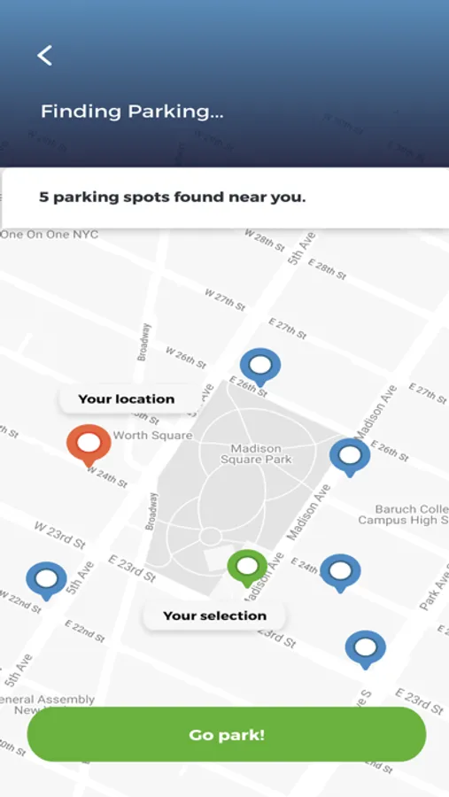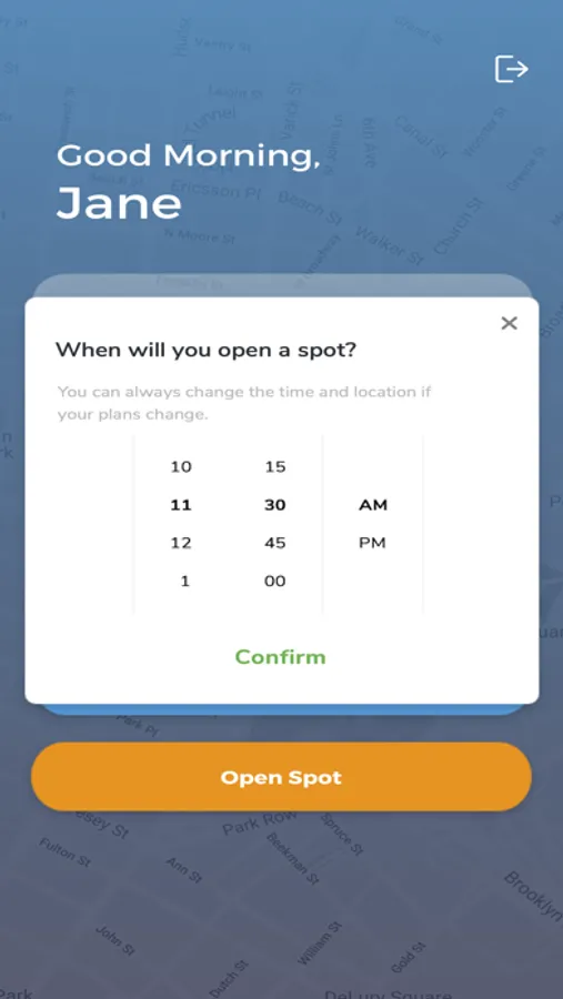 Our map will show you the spots shared by others. Select the parking spot that works best for you and we'll show you how to get there, your arrival time, and notify you when you arrive at the spot.