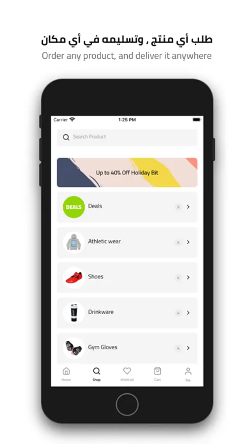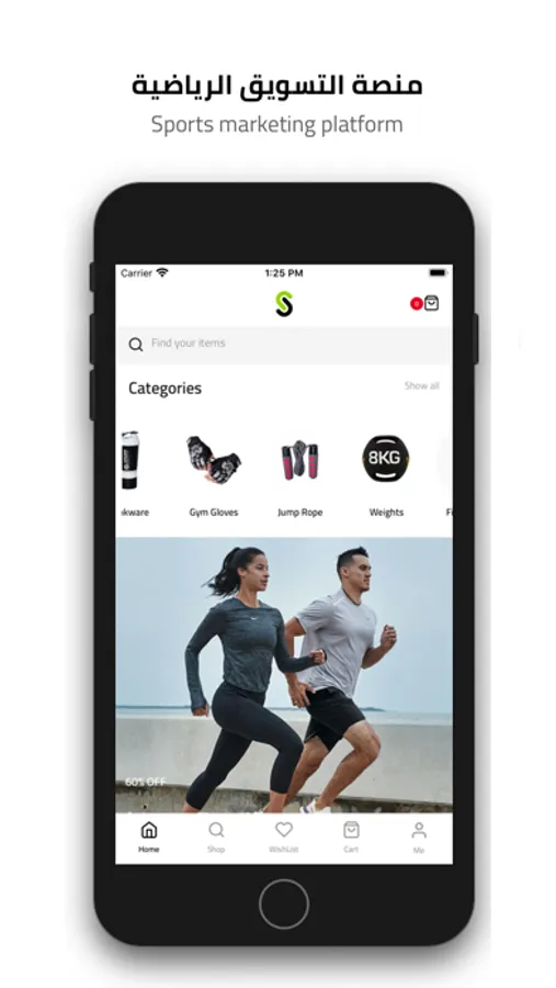 Sporty Store app includes all factories and distributors of sports products and equipment. Customers can compare service providers, order any product, and deliver it anywhere, anytime.