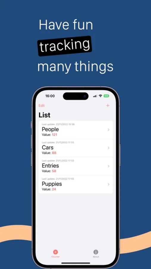 With My Counter, count the number of people in a show, the coffees you drink per day, the cigarettes you consume each day, the fruits you ate today, the animals in your shelter, the cars in your dealership and anything else you wish.