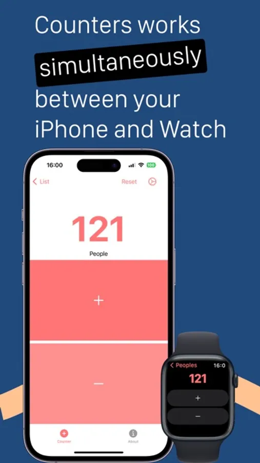 It's also possible to use your iPhone and Apple Watch at the same time when you count something. All your data is synchronized with iCloud.