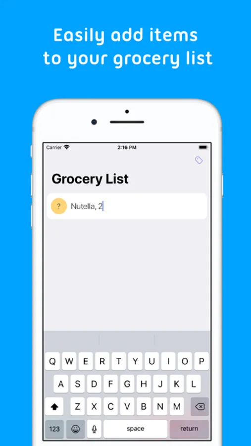 - When planning items to buy, you can easily specify the quantity, for example, "Bananas, 2", which will add "Bananas" to the list with quantity 2.