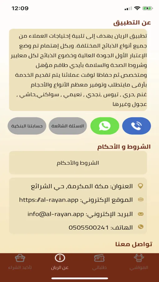 تطبيق الريان يهدف إلى تلبية إحتياجات العملاء من جميع أنواع الذبائح المختلفة.