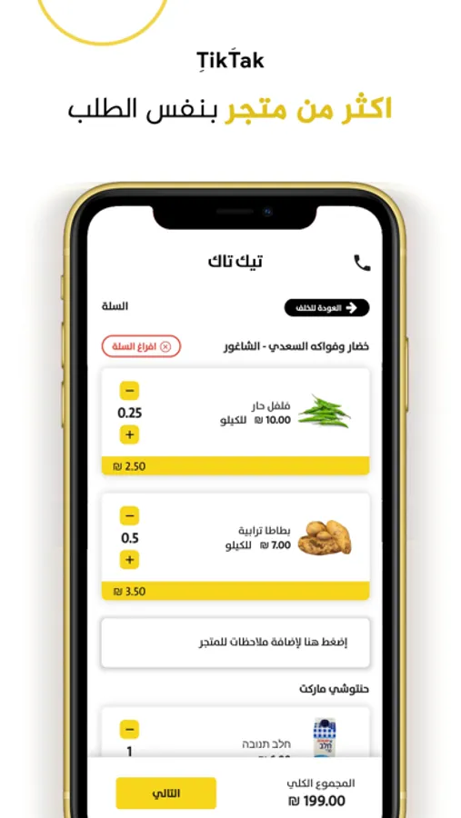 تيك تاك هو تطبيق يحتوي على سوق اونلاين وامكانيات توصيل واستلام للاحتياجات اليومية تغنيك عن الذهاب الى المتاجر مثل السوبر ماركت، المحمص، متجر اللحوم، الصيدلية ومحلات اخرى.