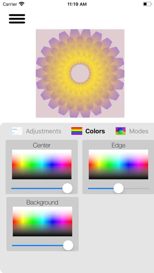 The different combinations enable you to make unique mandalas and the combinations of color, opacity and coloring modes permit even more creativity