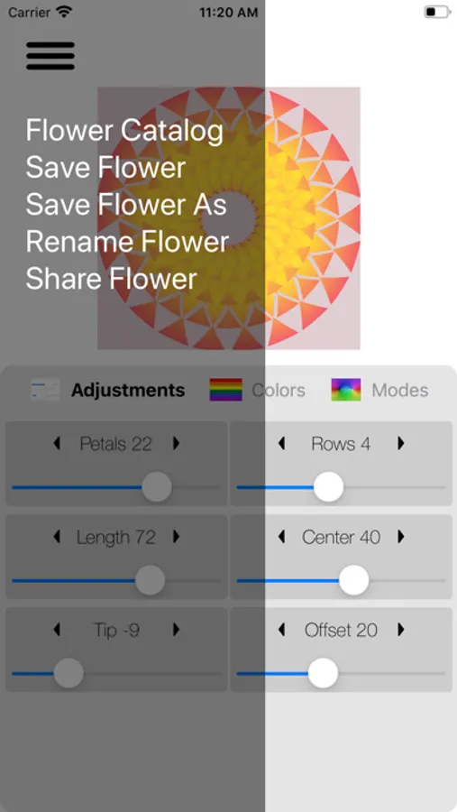 Relax and use your creativity and this tool to make beautiful flower mandalas. After you make a mandala, you can message to share your creation with friends.