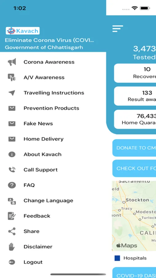 Kavach App has been developed by Government of Chhattisgarh to provide preventive care information and other government advisories. The app has following main sections :