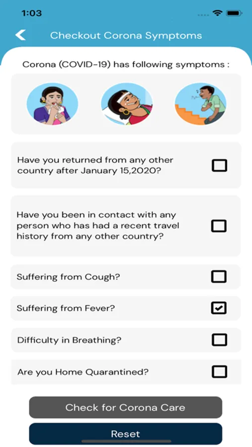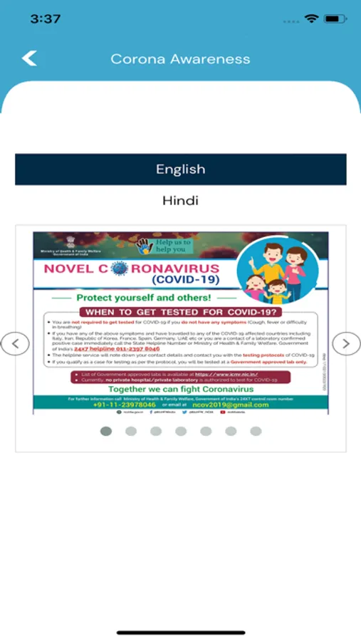 You will receive updates from government, advisories and instructions from time to time via PUSH notification on the App. This App will provide quick information and help to you. You should definitely visit nearest hospital / doctor in-case you develop novel corona virus symptoms or Call 104