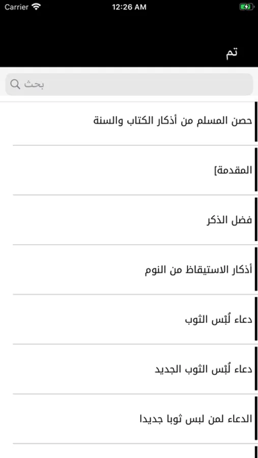 فهرس الكتاب حيث تستطيع الوصول للدعاء بسرعة وسهولة