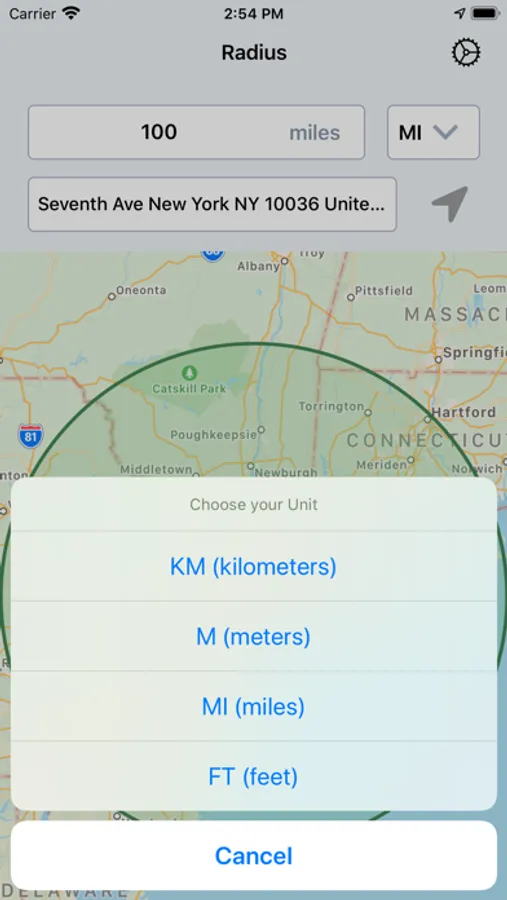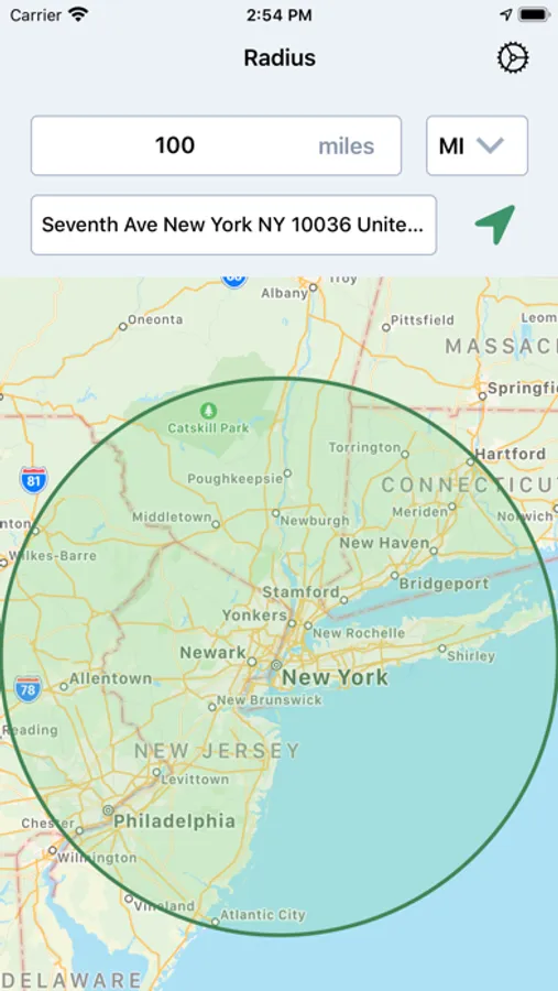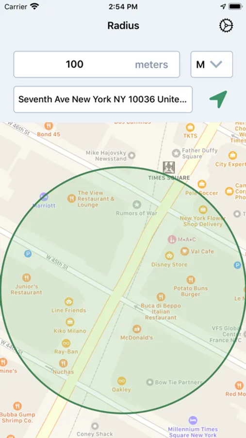 “Radius: Distance From Me” is a simple utility that will display your current location and allow you to view the radius (of a distance you choose) on a map. You can choose to see your personal radius in any one of four different measurement units: kilometers, meters, miles, or feet.