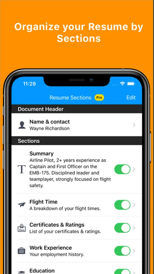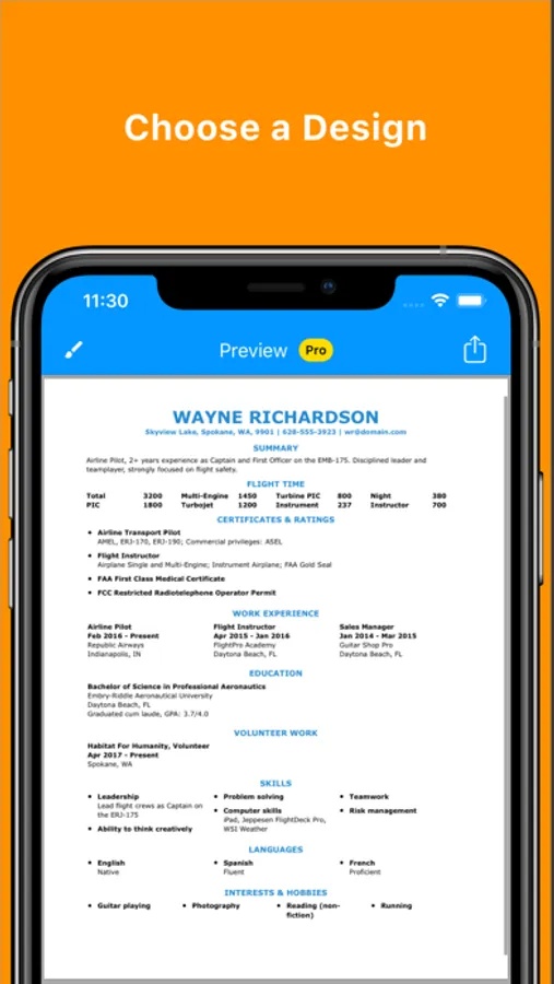 Create professional looking resumes to help you land your dream pilot or flight instructor job.