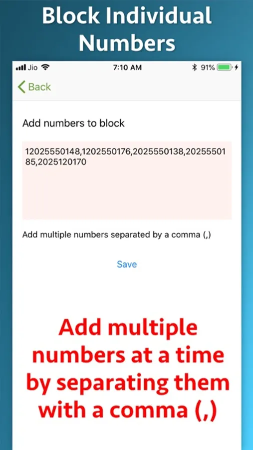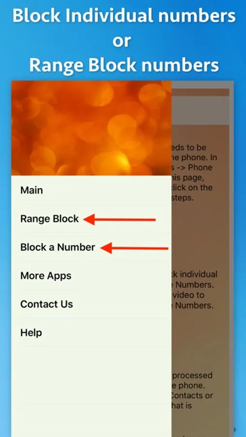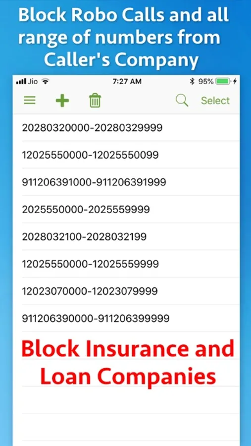 Block an Individual phone number or a Range of phone numbers. Using the application, you could block a person who is continuously calling you. You could also block the scammers, Robo Calls, insurance, loan or finance companies who are calling you from different numbers. In all these cases, you are bombarded with multiple calls from the same company. These companies generally call from different numbers in their organisation where the last 4-5 numbers of the phone number keep on changing. In this situation, blocking a single number will not work. For example : If you block +1-202-555-0136, you will start getting calls from +1-202-555-0137, +1-202-555-0138, or +1-202-555-0139. Here, all calls are coming from the same company. In this situation, the solution is to block the range of numbers. For example, in this situation, you could block numbers from 12025550000 To 12025559999. Here, please note the last four numbers at the end. When you specify this range, the application will block all 10000 possible phone numbers from where that company could call.