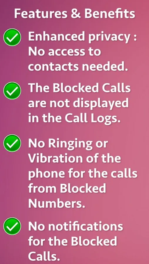 b) Complete peace of mind : The blocked calls are not displayed in the call logs.
