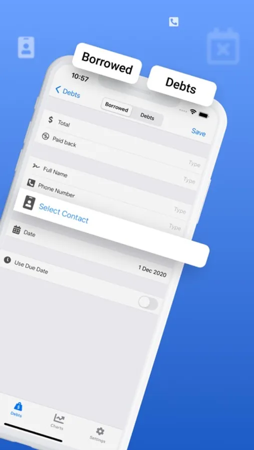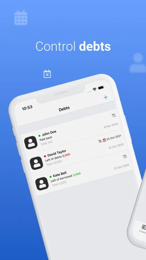 - Debts management - Track and manage your debts and make sure that you can pay off them on time.