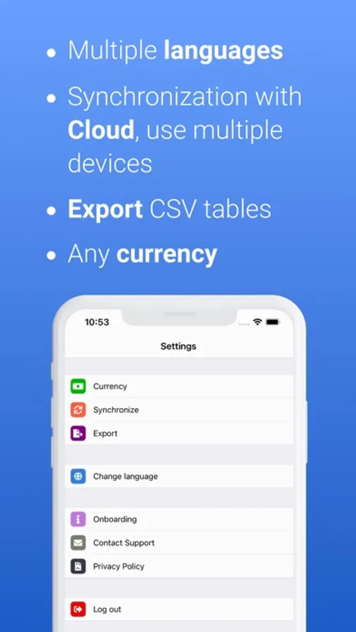 - Export all your data to CSV tables - Expense reports will help you to have a full picture of your personal finances.