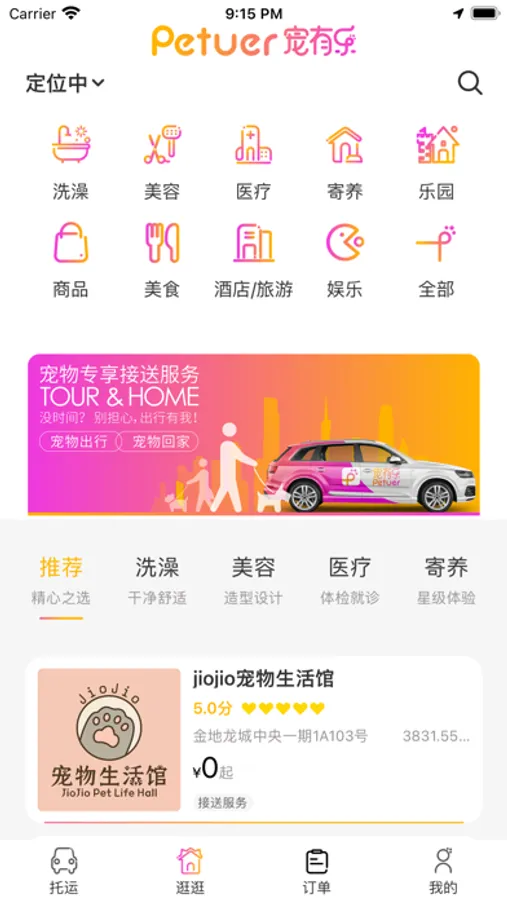 宠有乐上架宠物服务,旨在打造一站式养宠服务,使得用户可以足不出户就能享受到优质的宠物服务。通过与广大宠物店的合作,提供给用户多元化的服务选择,使得用户在做选择时有更多的选择
