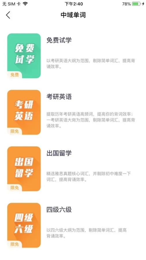 中域单词,考研英语背单词必备神器,高频常考词库全覆盖,专业词典,精准释义,专业匹配发音,更有单词小剧场,每天打卡背单词,循环记忆,让背单词成为一种乐趣。