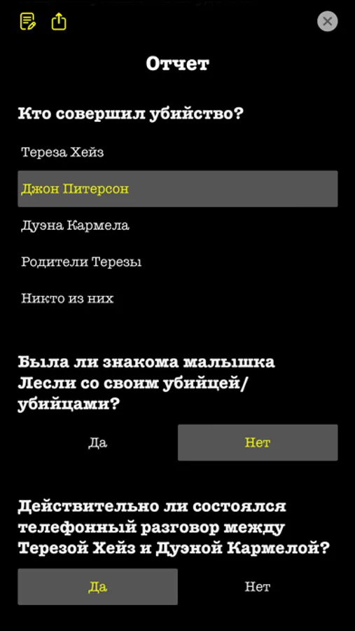 - Расследования. Вам дается история преступления, улики, фотографии, показания свидетелей. Изучив все это, нужно заполнить отчет, состоящий из нескольких вопросов. В этих заданиях нужно применять дедукцию, быть внимательным и делать логические умозаключения.
