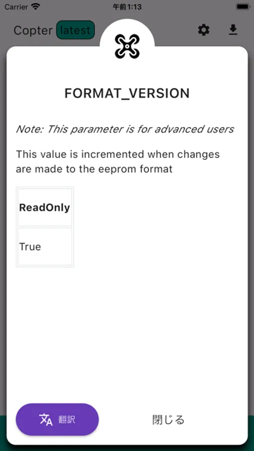 This app downloads the ArduPilot frame parameters and caches them in the terminal.