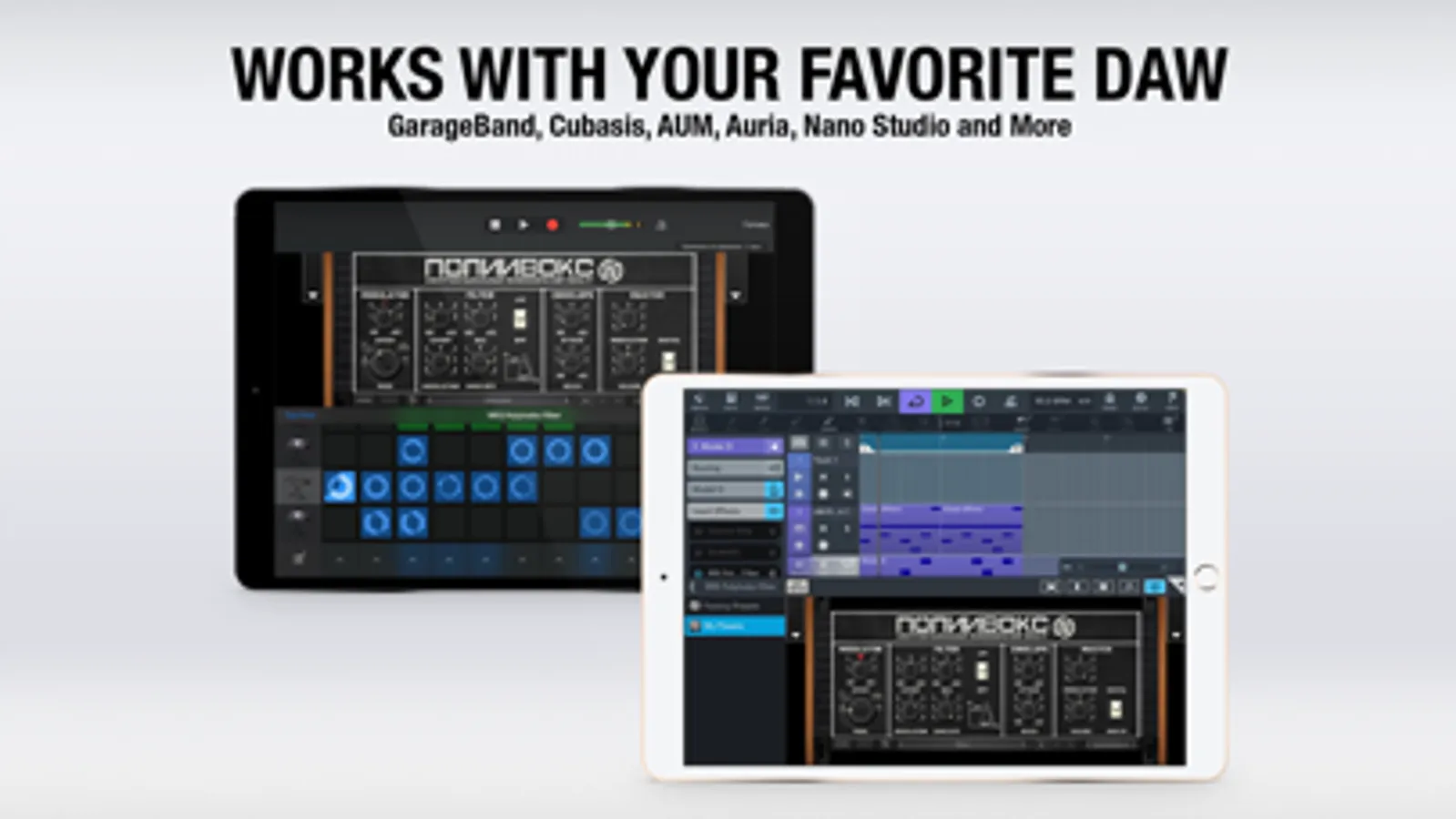 To use PolyIvoks Filter as a plug-in, you need an AUv3-compatible host app like GarageBand, Auria, AUM, Cubasis and more — PolyIvoks Filter will appear in the list of Audio Unit extensions for effect plug-ins in the host app.