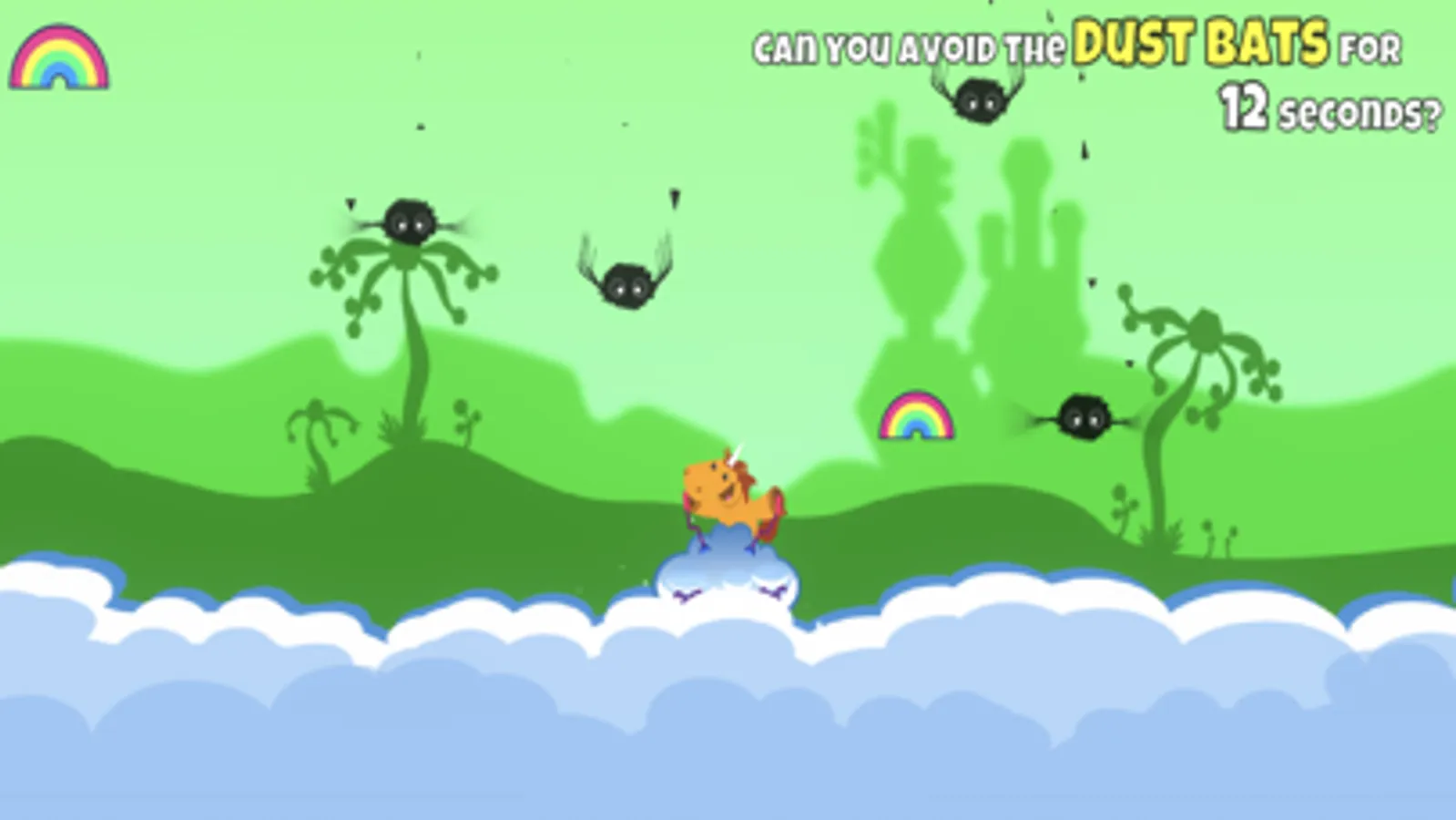 - choose "Invasion Mode" and select a Unicorn to drive the cloud avoiding the Dust Bats!