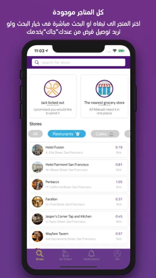 جمعنا كل الأماكن في منطقتك، محتاج أي حاجة من أي مكان، جاك يكفيك عناء الزحمة والمشوار، نزل طلبك، وأحد مندوبينا رح يوصله لعند بابك.