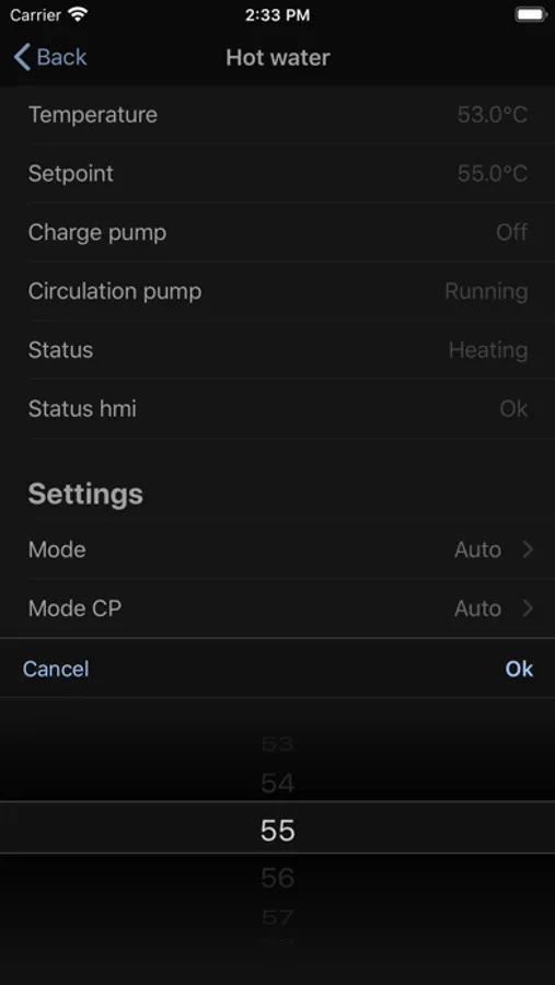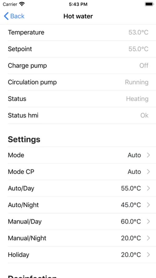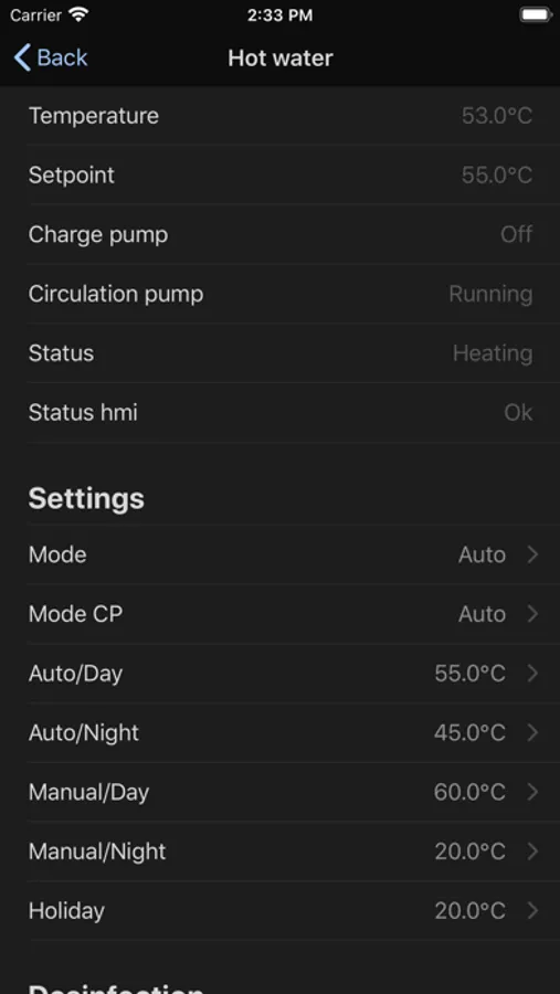 - Change hot water mode (Day/Night or Automatic/Manual)