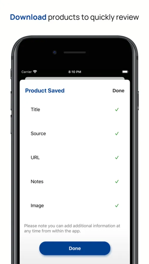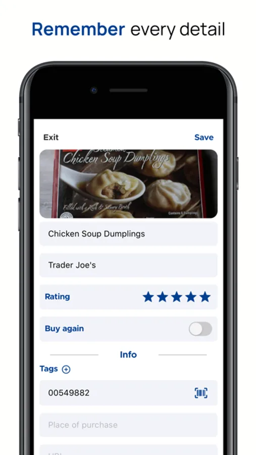 You can scan barcodes to quickly find what you thought of a product to make sure you only buy the product you liked. You can also download product information using the Share Extension to quickly pre-fill reviews.