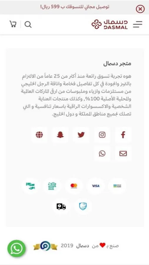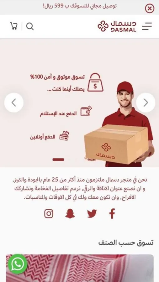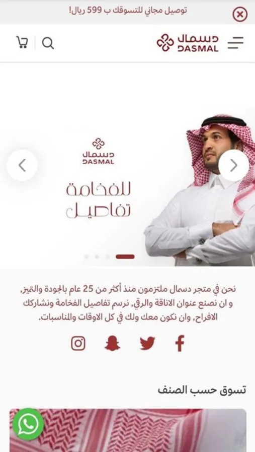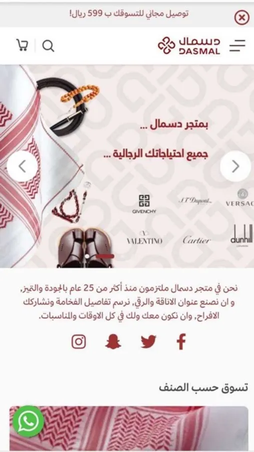 متجر دسمال هوه تجربة تسوق رائعة منذ أكثر من 25 عاماً من الالتزام بالتميز والجودة في كل تفاصيل فخامة واناقة الرجل الخليجي من مستلزمات وازياء وملبوسات من ارقى الماركات العالمية والمحلية الأصلية 100%, وكذلك منتجات العناية الشخصية والاكسسوارات الراقية وكل مايحتاجة الرجل باسعار تنافسية و التي تصلك لجميع مناطق المملكة و دول الخليج.