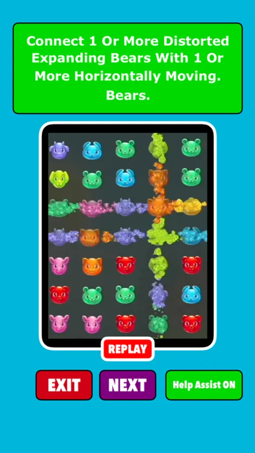 Connect at least 3 bear heads of the same colour by drawing a line with your finger.