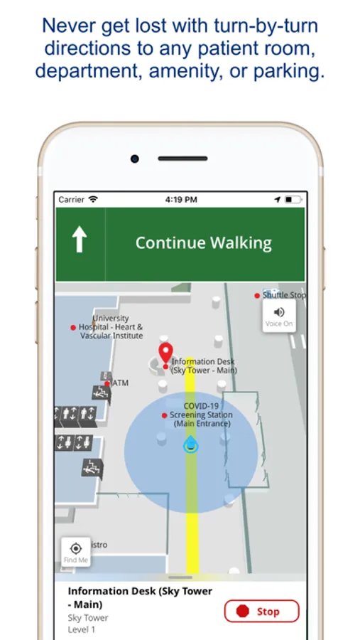 • Navigate to our patient care facilities with guided, turn-by-turn directions