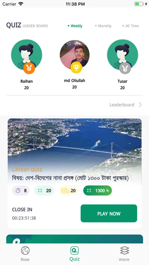 Participate in quizzes based on recent events, earn points and see yourself in the leaderboard.