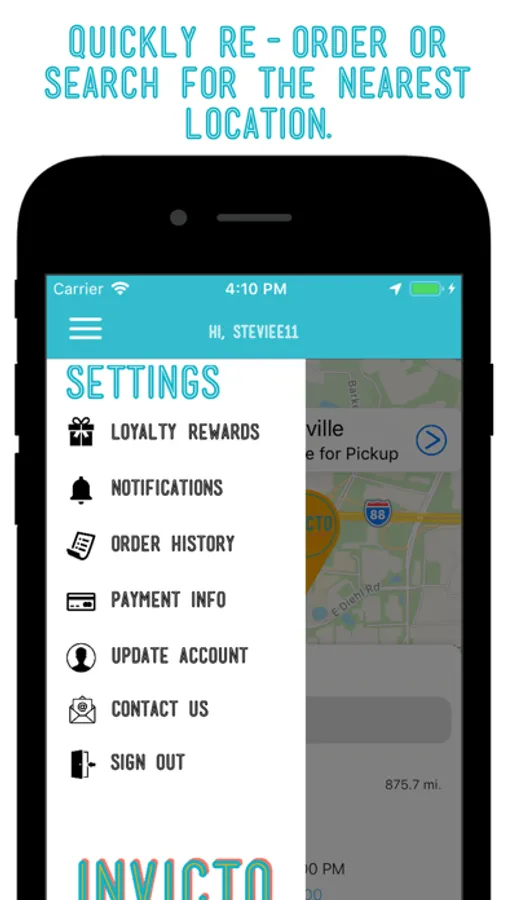 Order ahead with the new INVICTO app. Download today so you can start earning free food and catch the latest happenings.