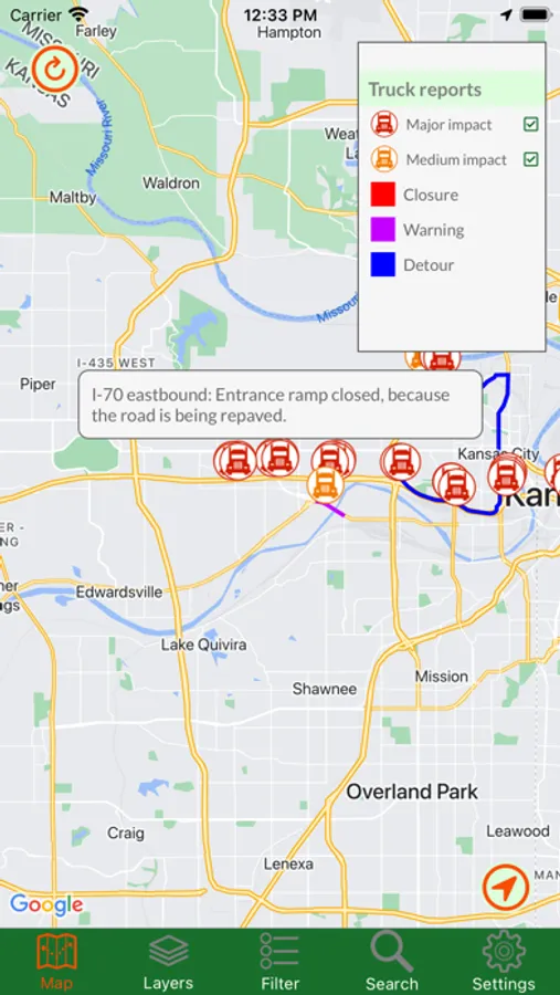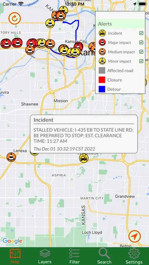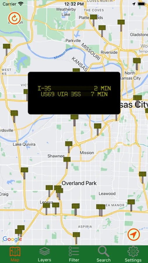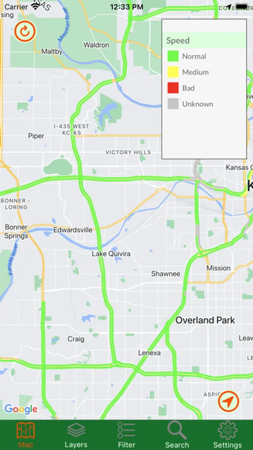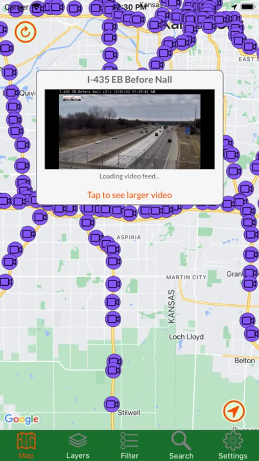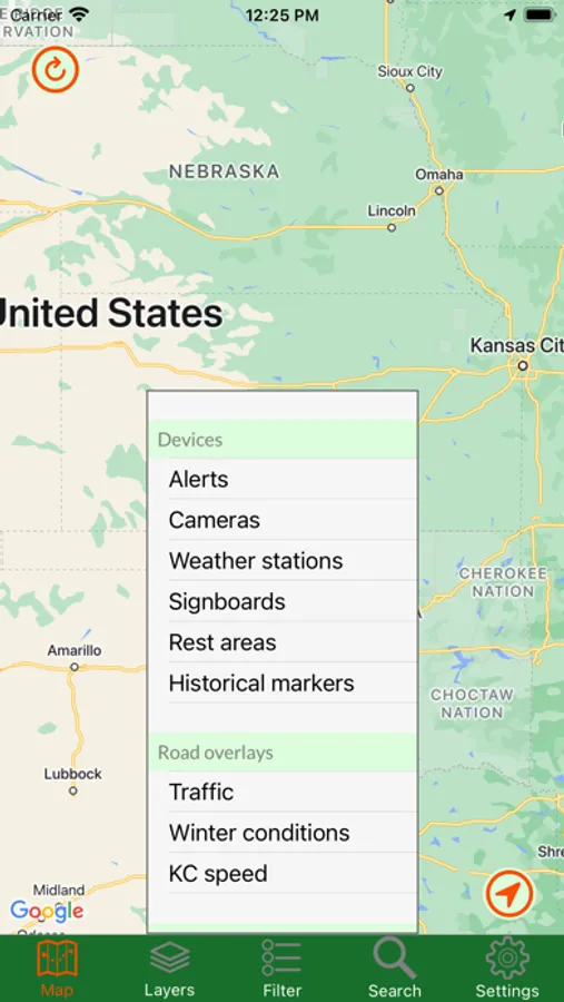 Kansas Traveler shows you the current status of major roads and highways throughout the entire state. By accessing the state's road data, you can view traffic cameras, read alerts about construction and other road-related issues, get stats from weather stations, and read roadside signboard messages. You can view road overlays that tell you the current speed or weather-related driving conditions. Also available is Google Traffic, just so you have all the data in one app. For in-app purchases, you can read all those historical markers without getting out of your car!