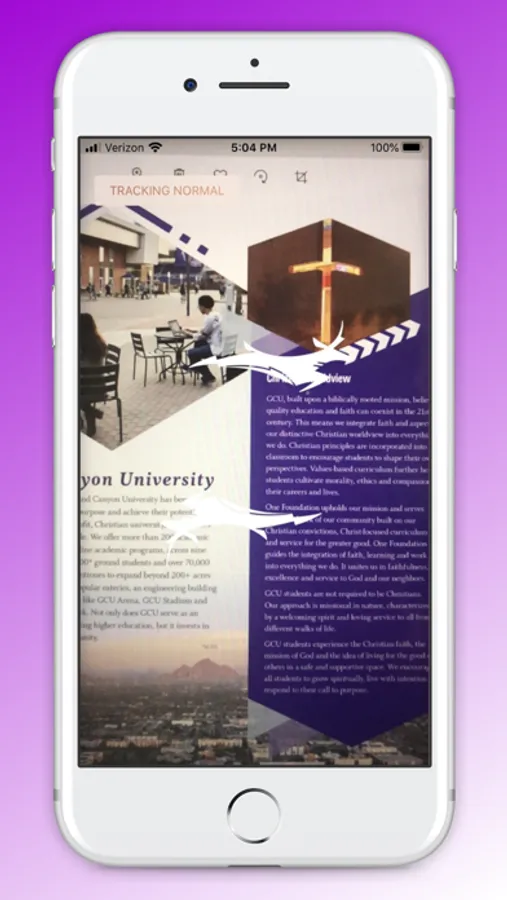Grand Canyon University is proud to announce a new virtual tour application utilizing augmented reality. By using the camera on your phone, you can now bring select GCU materials and campus locations to life! When you scan a GCU approved trigger, this application will play video content related to your topic of choice. If you don't have access to specific GCU materials or our campus, please use the in-app features to view our content online! 'Lopes Up!