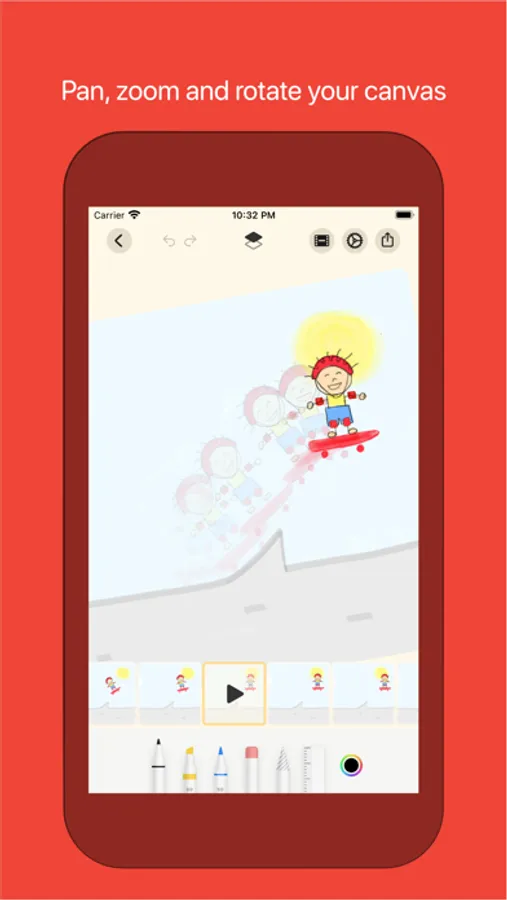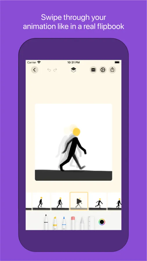 * Swipe over the filmstrip to flip through your animation like a real physical flipbook
