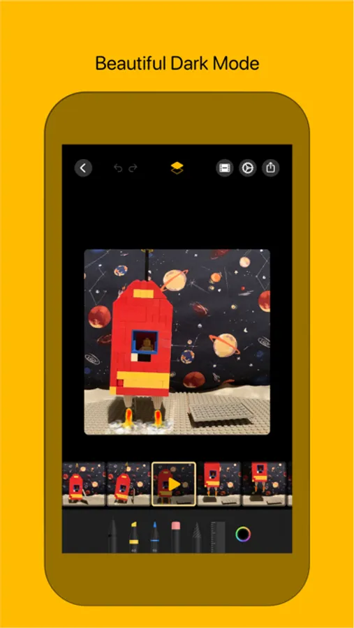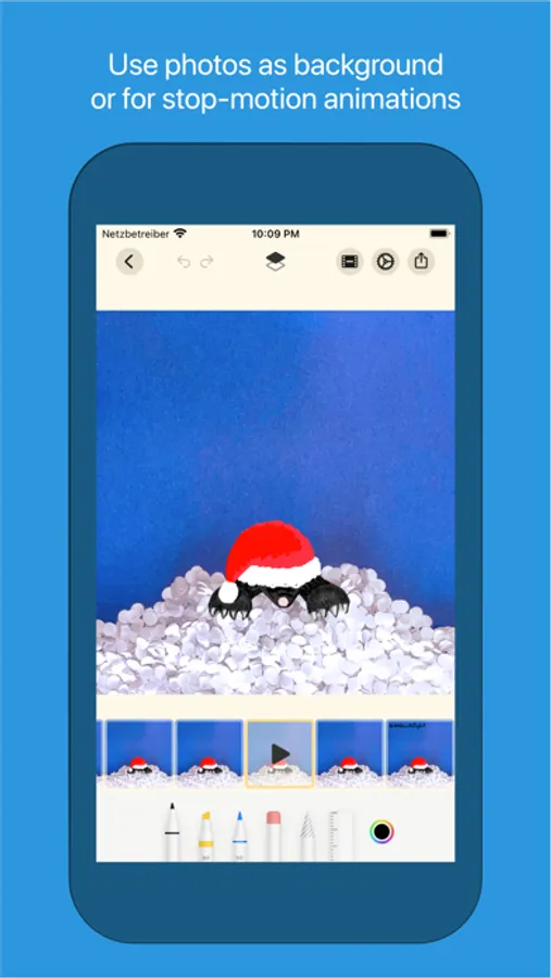Import photos from your library or use the camera to give your animations the right background. Similarly, you can use photos to create a stop-motion animation which can be refined by your drawings.
