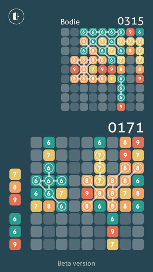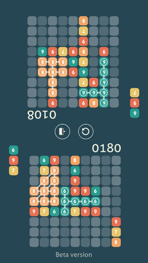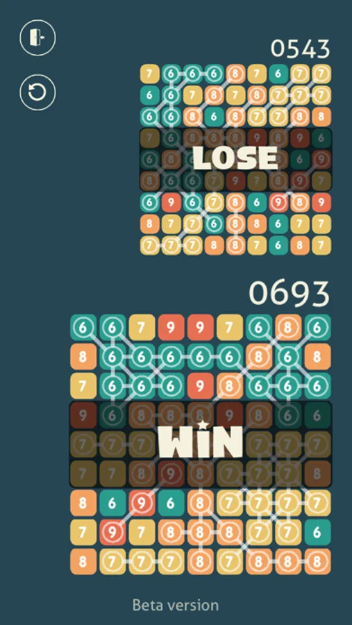 One 9x9 board is divided into 27 positions. Each turn, the player will be provided with 3 blocks, moving the blocks into 27 locations. The target is to make horizontal, vertical or diagonal lines of same numbers to score. Keep going until the board is filled with numbers.