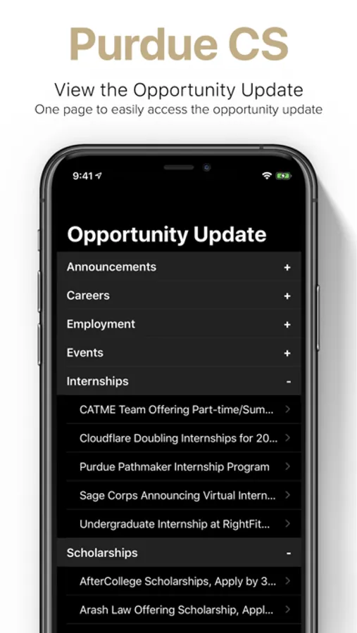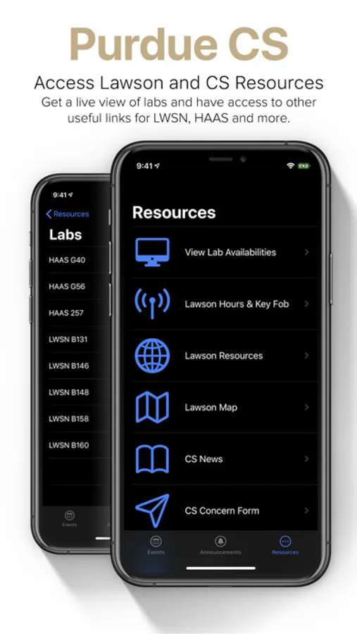 This is the app for students in Computer Science at Purdue University or for those wanting to get involved in events by students organizations in CS. It offers a simple interface with the ability to follow events, view the Computer Science opportunity update and get resources like a live view of the Lawson and Haas labs to check for availabilities.