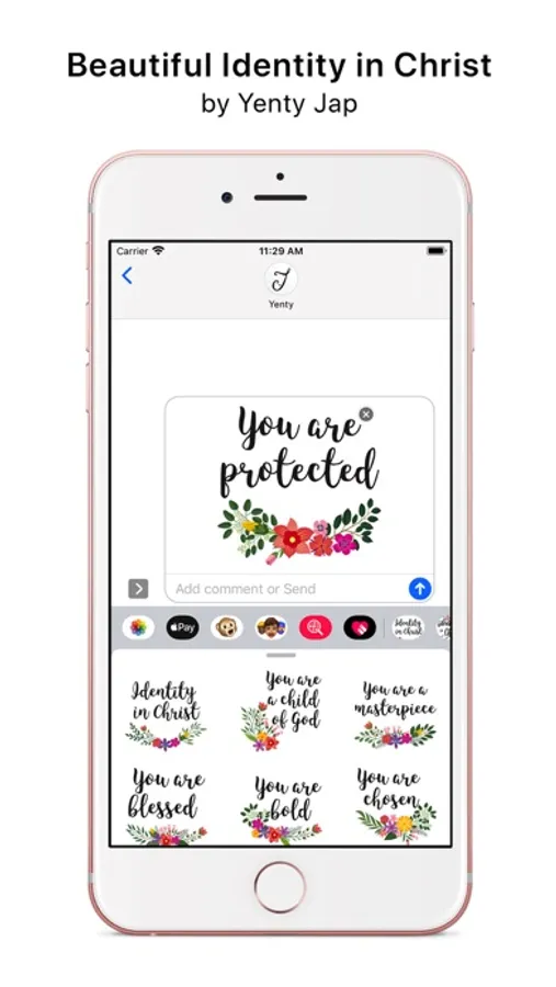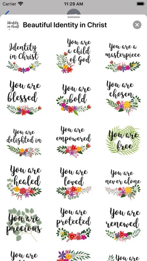 Identity in Christ is a collection of iMessage stickers that remind us of Gods gifts to us. This collection was purposely designed so you can easily use it to send to your friends, family and anyone that you think needs a daily reminder of who they are.