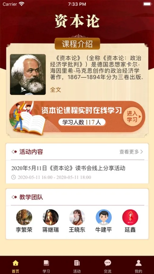 涵盖马克思著作《资本论》公开课课程内容。名师讲课提前有公告,通知同学上课时间内容。讲课完成更会分享上课资料。