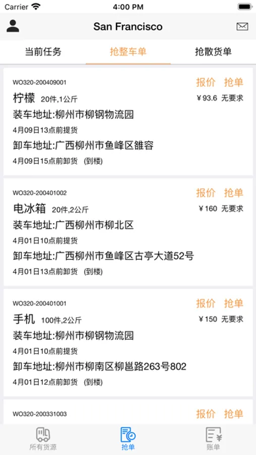 欧拉拉APP,是面向同城配送的司机端软件,司机可以一键抢单,报价议价,即时结算,查阅历史账单.为司机和货主搭建更方便快捷的沟通桥梁.