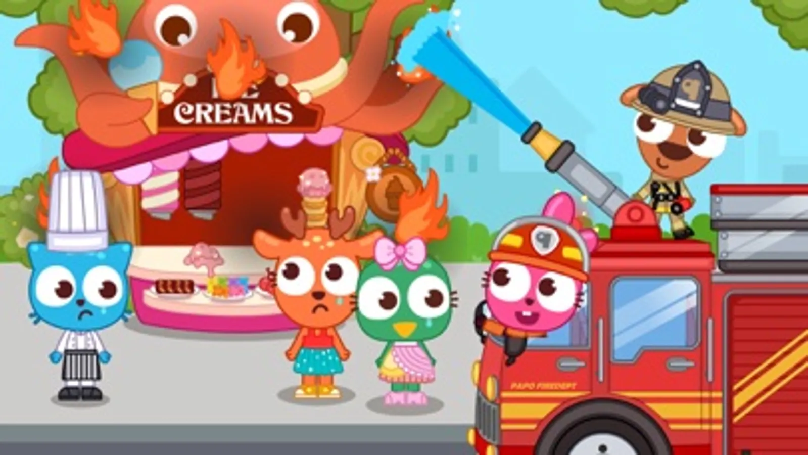 Papo Town Fire Department is recruiting! Who wants to be a brave firefighter hero? Together with Purple Pink and other Papo friends, let’s save the town residents trapped in the fire accidents, and protect their lives and property from fire!
