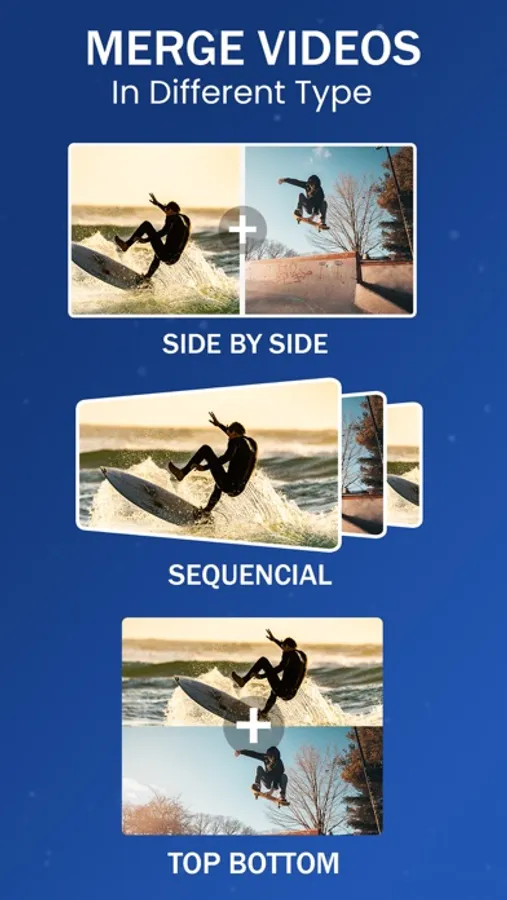 The merged videos are also compressed together maintaining original quality to a smaller sized videos than all the original video sizes combined.