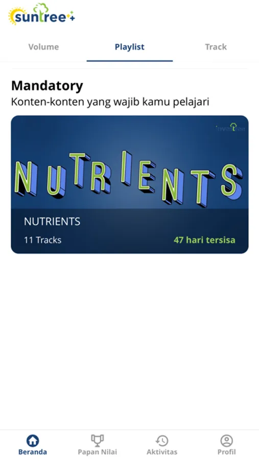 Suntree stands for Streaming, Upskilling, and Nurturing Track for 1Investree. Suntree is an interactive and engaging learning apps where 1Investree can get continuous development. Suntree offers knowledge-rich course to fulfill 1Investree learning needs.