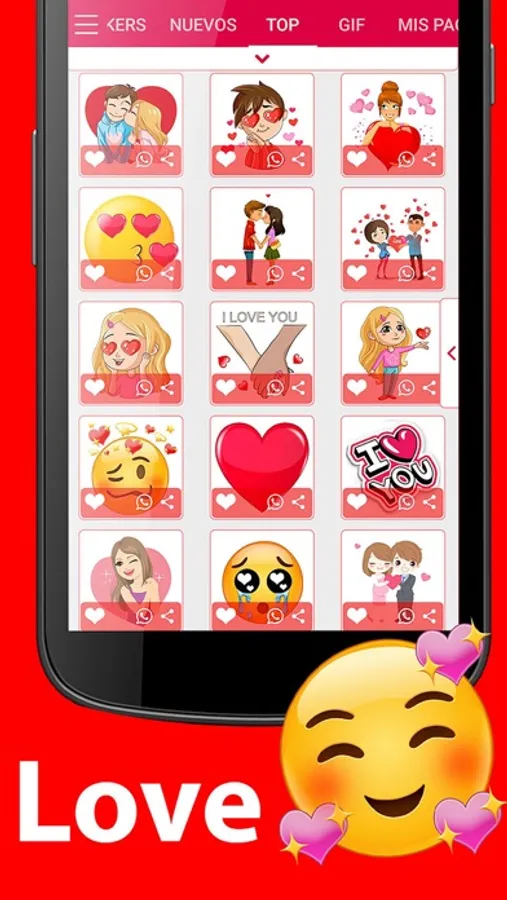 Currently the app already has a great content of loving WAStickerApps stickers for all situations, among them you can find the romantic love WAStickerApps of couples relationships, ideal for when you talk with your boyfriend or girlfriend, husband or wife, there are also incredible emojis of love, Estiquer of roses, love hearts of all kinds, cute animals, emojis and for eventual dates such as Valentine's Day or Christmas.