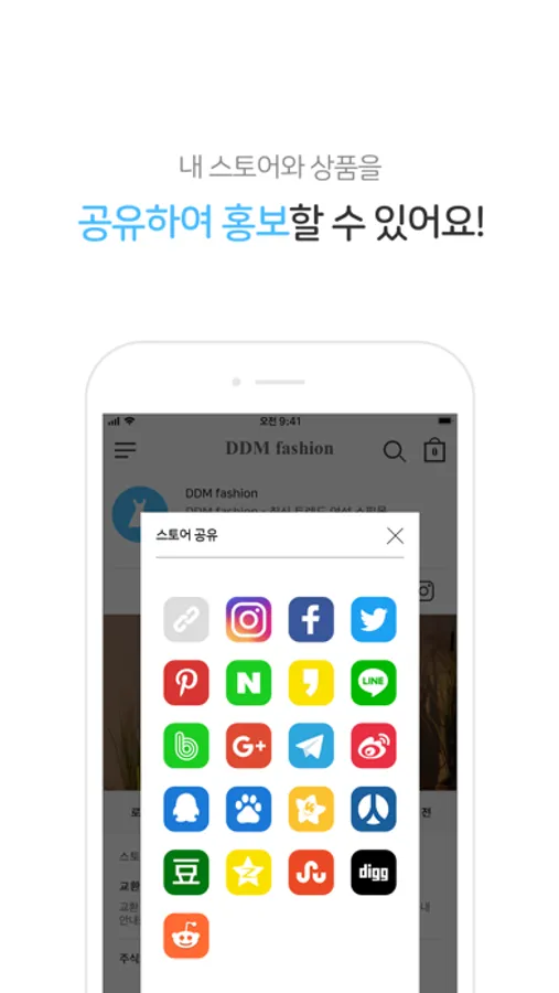 - 스토어와 상품을 SNS로 편리하게 공유할 수 있습니다.